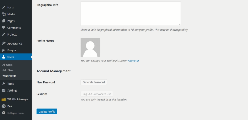 Strong passwords protect you from brute-force attacks and other bad things people do to your site. Luckily, WordPress gives you a built-in way to generate a strong password.