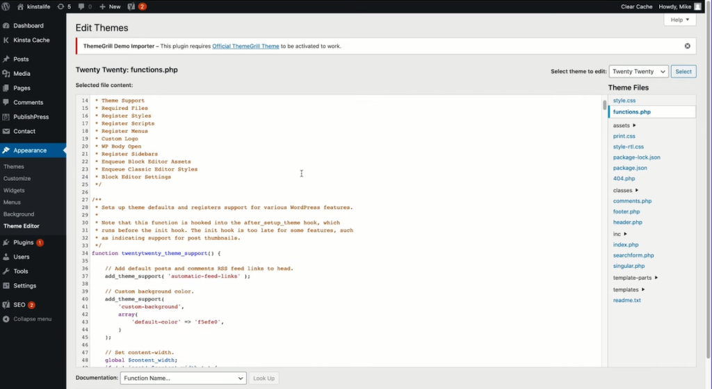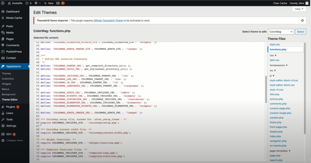 Now, if you want to edit the code, you’ll have a number of options available to you from using the block editor to the customizer, right to editing the files.